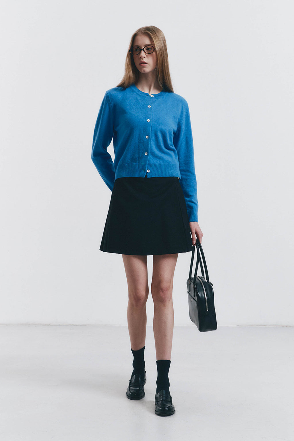 Essential Crewneck Knit Cardigan - blue