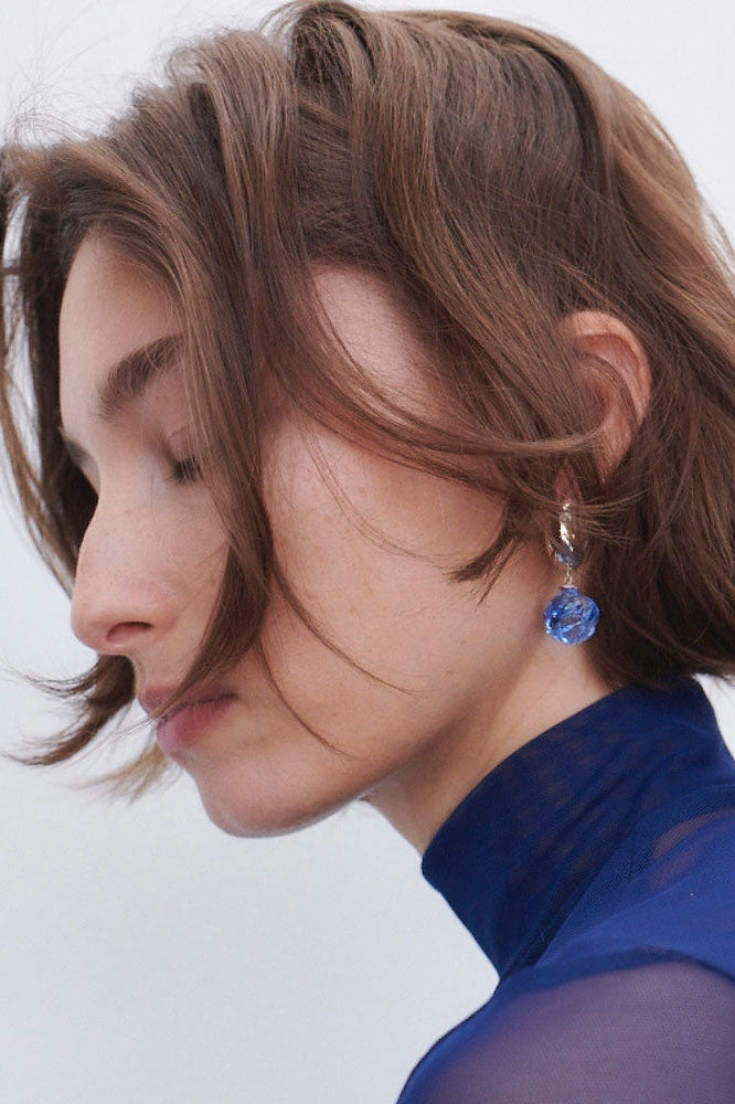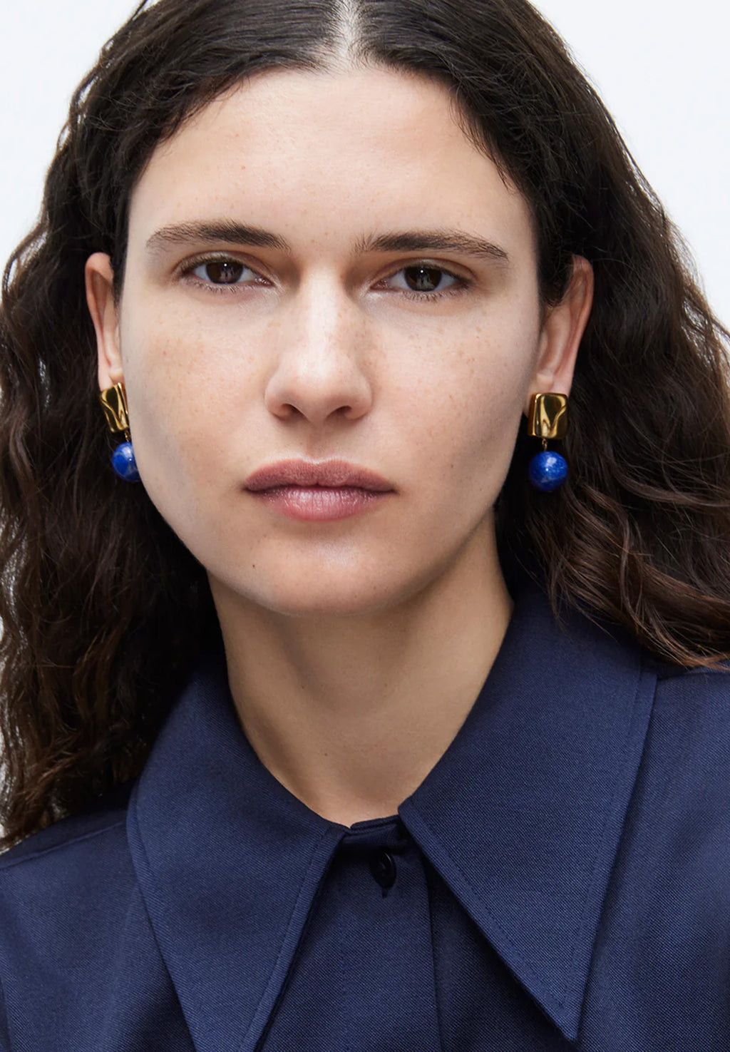 Petites Boucles d'Oreilles Cleo - Or Vermeil / Verre - bleu