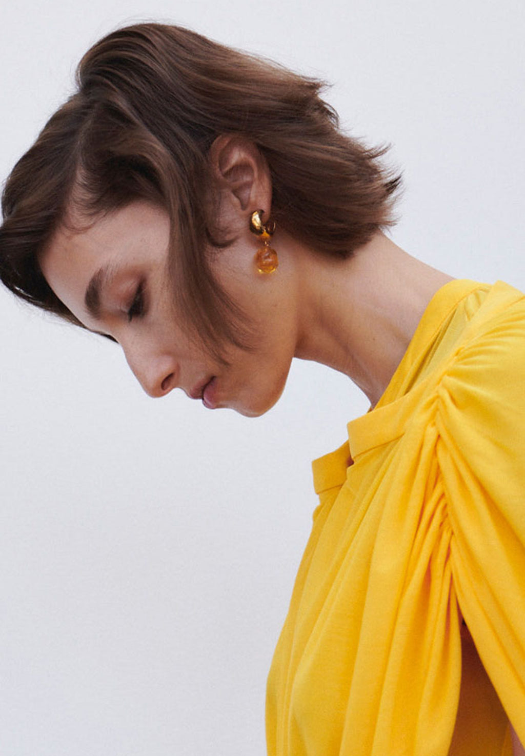 Petites Boucles d'Oreilles Cleo - Or Vermeil / Verre - jaune